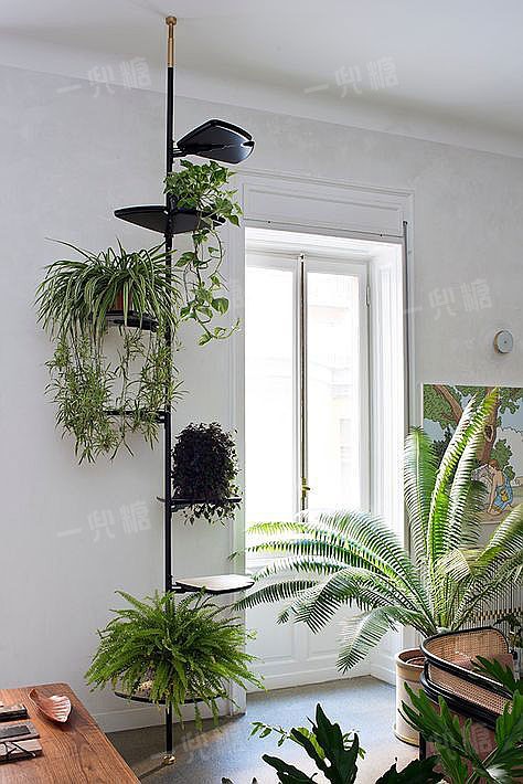 花架,具体看个人喜好和室内装修风格而定,陶瓷盆、木质架、或者钢架,不同材质与空间搭配的效果也有不同。