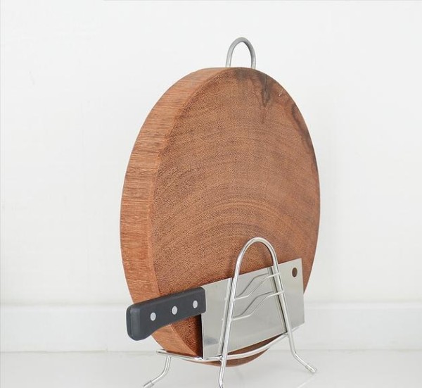 砧板还是立起来安放比较好,这样方便保持干燥,不容易滋生细菌。这款不锈钢的砧板架,底部稳定,可以支撑其砧板,简约的设计不会突兀,砧板和刀都能放。