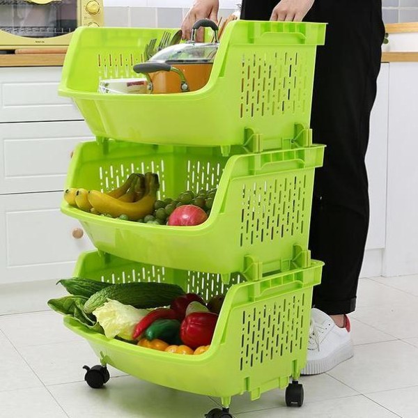 蔬菜水果买太多冰箱放不下,有些水果也不适宜用冰箱储存,这款置物架就用得上。三层设计容量大,镂空设计透气通风,卡扣稳定不会掉落,底部有四个轮子,移动方便。