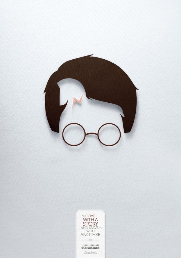 Colsubsidio 是一间二手书交换中心,广告中的主视觉看似只有一个主人翁,其实都还隐藏着另一个故事,像是哈利波特的头发就藏着特洛伊木马屠城记的图像,非常巧妙,看看你能否找出其它隐藏在里头的故事。 agency是哥伦比亚的Lowe/SSP3。(via adcstudio)