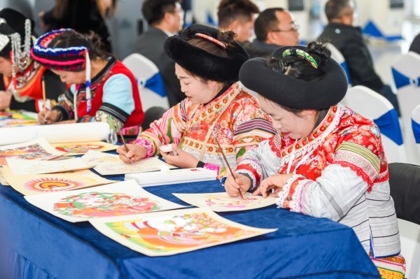 水城区以农民画为纽带,通过“艺术赋魂、双链赋能”路径,构建文化资源转化体系。聚焦刺绣纹样、蜡染图案等元素,推动“作品—专利—产品”转化:依托外观专利固化苗族图腾品牌,以实用新型专利保护农具工艺创新,结合“夜郎风”等商标,形成“画师创作—版权确权—专利孵化—文创量产”产业链闭环。