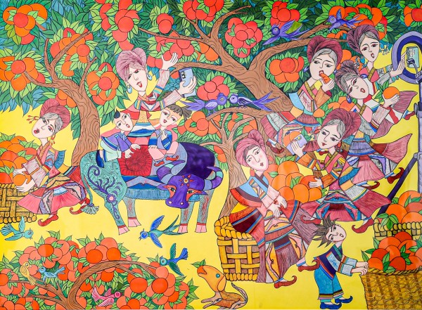 在花戛乡花水村,60岁的韦阿婆第一次拿起画笔参加“农民画师培育计划”:“我画的是寨子里的‘孝老爱亲榜’,这些好人好事就该让更多人晓得!”水城区邀请非遗传承人、高校专家开设构图、配色等课程,大力培训农民画师。