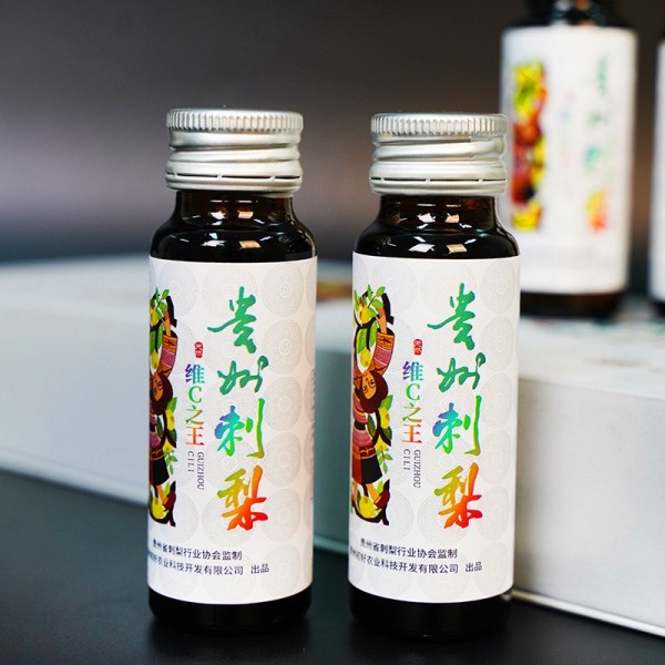在贵阳龙洞堡机场航站楼里,旅客赵明轩被特殊展品吸引——苗族少女采摘刺梨的气泡水礼盒旁,立着垃圾分类公益广告模型。他扫描包装二维码,屏幕跳转动画版《刺梨丰收图》,果农将坏果投入垃圾桶。“设计有创意,买饮料还能学环保!”他当即下单三箱刺梨气泡水,要带回公司展示“会说话”的包装。