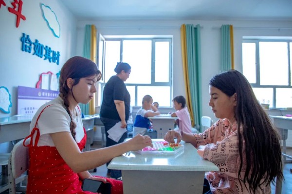8月6日,在精河镇幸福社区,“变废为宝”手工制作活动正在如火如荼地开展,20余名小朋友利用回收废旧消毒后的塑料瓶和五颜六色的黏土、剪刀等手工制作材料,将原有的废品变“废”为“宝”,制作成形色不一的笔筒。老师耐心地手把手教学,小朋友和家长们专注地揉捏黏土,经过一个多小时的忙碌,原本不起眼的塑料瓶在小朋友们的巧手下,变成了一个个色彩鲜艳、造型各异的精美笔筒。