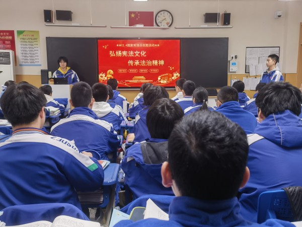 今年12月4日是第十一个国家宪法日。“大力弘扬宪法精神,推动进一步全面深化改革”为今年宪法日的主题。为庆祝2024年国家宪法日,进一步普及宪法知识,强化全校师生的宪法意识,我校利用晨读时间开展法治晨读活动。本次活动旨在让宪法精神深入人心,成为每位师生日常生活的指南与遵循。