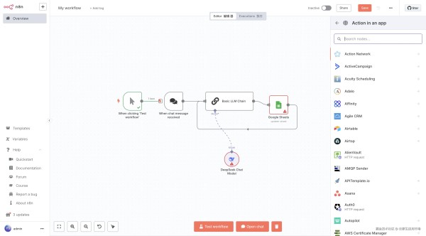搭建工作流程就像搭积木一样简单。在 n8n 的界面里,你只需从左侧的节点库中拖曳各种功能节点,比如触发器、操作节点、过滤器等,然后用线条连接起来,就能创建出复杂的自动化流程。每个节点的配置都有清晰的提示,即使是技术小白也能快速上手。