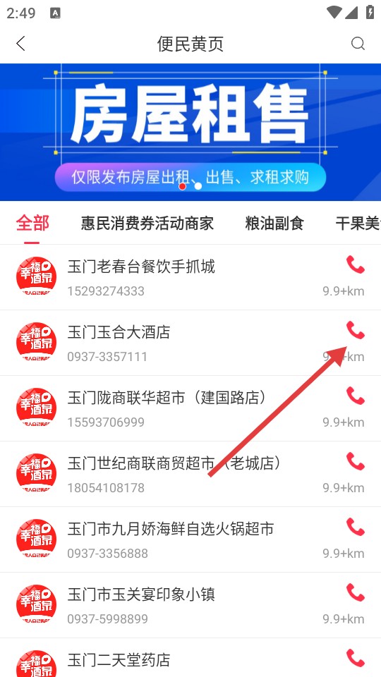 3、进入便民黄页的房屋租售板块,可选择目标商家查看。