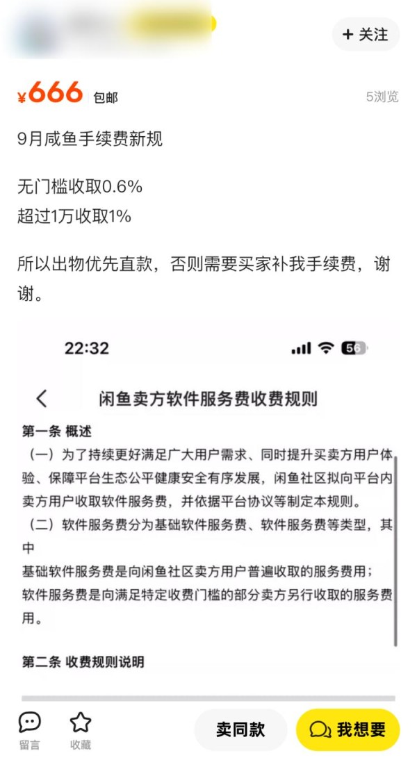 “闲鱼一直是向成交额高卖家收取1%的服务费的。我的理解是,根据公告,以后每个月要多向平台缴纳60元的费用,我也是可以接受。”徐先生说。