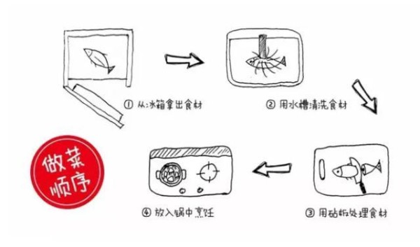 其实在我们做饭的时候一定要注意的就是做菜的步骤了,尤其有冰箱的话,还要注意拿食材的顺序了,这个就是所谓的动线。