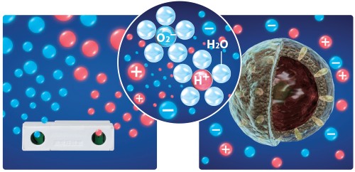 藉由等离子放电,释放出与自然界相同的正(H+)与负(O2−)离子,离子被水分子包围释放在空气中。