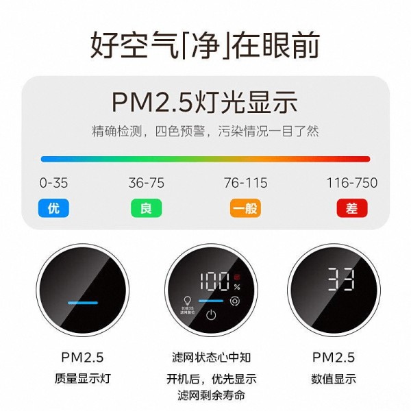 此外,米家空气净化器4lite配备实时空气监测功能,LED数显屏幕直观显示室内PM2.5状态,随时关注空气质量变化。拥有精准的空气质量传感器,使用户能够及时了解室内空气状况并主动应对,提高居住舒适度。尤其对于那些对空气质量有高要求的人群,再也不用担心家中的污染物超标,轻松呼吸清新空气,守护每一口呼吸。