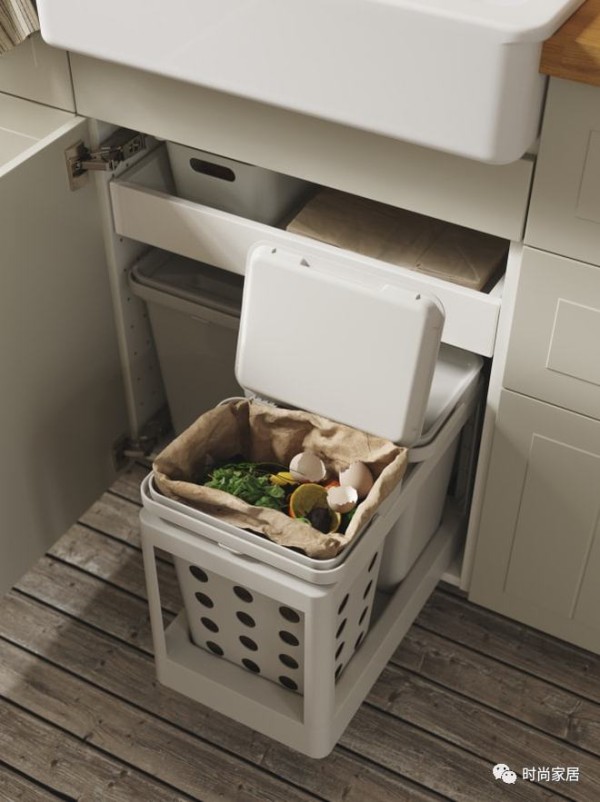 为不同类型的垃圾分别准备一个垃圾桶,垃圾分类自然轻松得多。对于有机废物,最好使用带通风孔的垃圾桶,有助空气流通。尽量将垃圾桶放在靠近水槽的位置,可减少垃圾溅出。