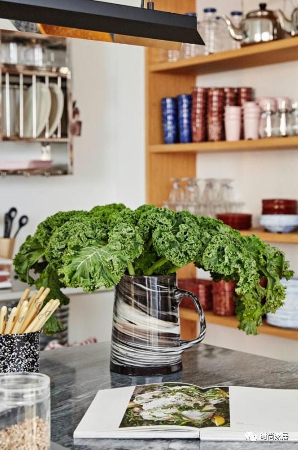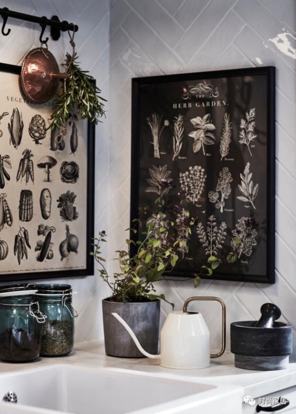 厨房也能成为小小的室内花园,自己亲手种植一些常用的蔬菜和香草,既节约又新鲜,也是厨房中绝妙的装饰盆栽。让你放松身心,享受有趣的烹饪时光。