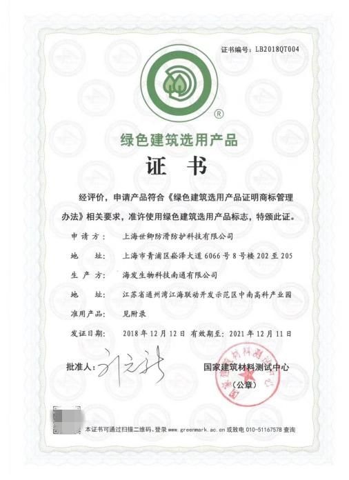 02 世卿地面防滑剂荣获《绿色建筑选用产品》认证