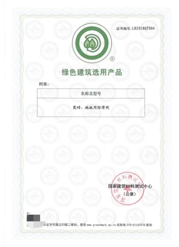 然而,随着环保意识的不断提高,绿色建筑的需求也日益增长,传统的防滑产品因其化学成分复杂、可能对环境和人体健康造成负面影响,逐渐无法满足市场的需求。为此,世卿地面防滑剂在研发过程中着力突破,采用了更加环保、无毒、无公害的原材料,配合先进的生产工艺,打造出了一款符合绿色建筑标准的防滑产品。这一创新不仅提升了防滑剂的性能,同时也符合了国家对环保、绿色建筑材料的严苛要求,顺利通过了严格的认证测试,最终荣获《绿色建筑选用产品》认证。