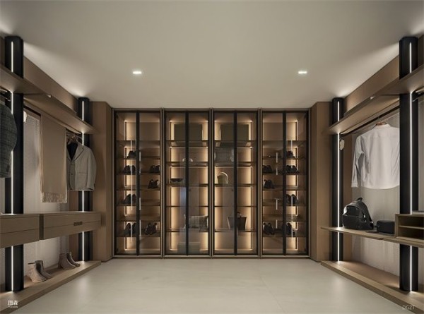 展厅将法式雕花的精致与东方留白的意境交织,通过纯白基调与温润木饰面构建静谧底色,模块化设计赋予空间自由重组的灵活性。衣帽间区域以深色木纹与布艺工艺碰撞,结合紫藤花刺绣墙与开放式陈列,实现功能需求与艺术表达的共生,让日常收纳成为空间叙事的主角。