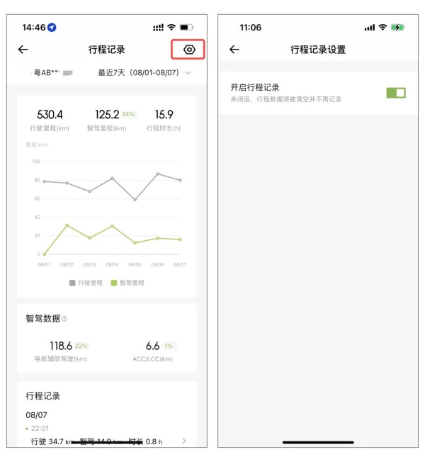 当然了,你也可以通过点击页面右上角的‘设置’,选择关闭【行程记录】功能,真正做到随心掌控。