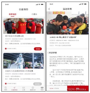 1.进入公益活动界面,界面内包括活动展示、活动报名。