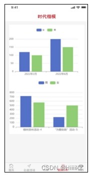 5.显示底部导航栏,采用图标加文字方式显示,图标在上,文字在下,共五个图标+文字组合,分别为首页、公益活动、心得、数据分析和我的,点击标签项进入对应页面,并颜色标记当前页面所在导航栏标签的icon和名称,当点击导航栏标签切换页面时,导航栏图标尺寸立刻变为原来的50%,500毫秒内逐渐恢复至原尺寸。
