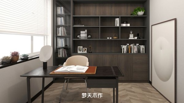 书房不仅是家中阅读沉淀自我的重要场所,更是充满生活想象的空间。梦天木作深刻理解并精准捕捉居者对阅读环境的独特偏好与需求,从细微之处入手,匠心打造温馨而治愈的书房空间。一桌一椅一空间,一灯一人一卷书,便足以构筑起远离尘嚣、沉思静悟的心灵栖所,让心灵得以安放,享受片刻的宁静与自我对话。