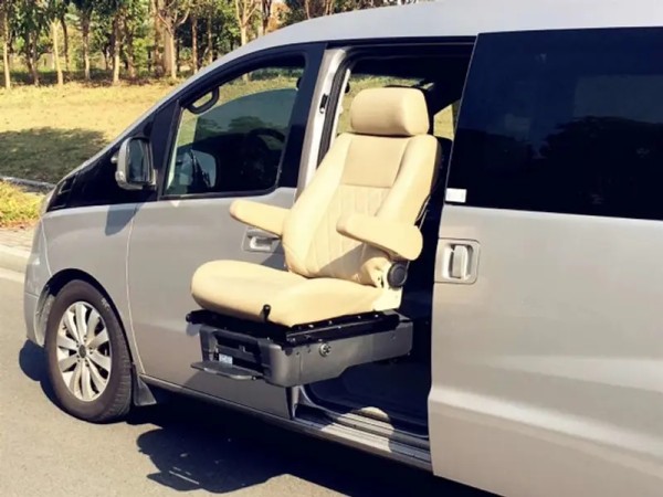 福祉座椅是利用福祉机构来辅助汽车座椅完成旋转升降动作,使得汽车座椅得以旋转出车外,并可以下降到合适的高度,使行动不便的特殊人士可以更加轻松地转移至座椅上,并从座椅上转移到车辆内外。这种设计简化了他们上下车的过程,减轻照料人的负担。真正的实现了无障碍出行。