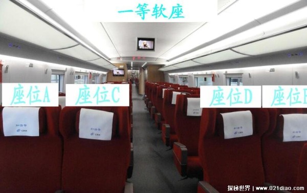 一等座是相对于二等座来说便宜一点的座位,环境也相对好一点,一排只有四个座位,没有那么拥挤。一排有A、C、D、F四个座位,其中A、C是一边,D、F是另一边,没有B座和E座,这样比起来,两边都差不多,买票的话就不用挑了,喜欢靠窗的朋友买A座和F座的可以了。
