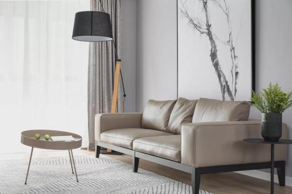 ▲沙发墙挂一幅大面积的黑白树枝装饰画,而米白色皮沙发在黑色脚与黑色边几的搭配下,也是显得优雅而舒适惬意。