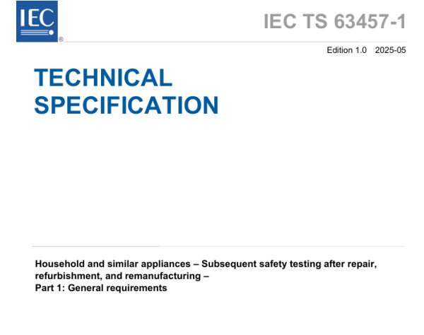 5月19日,由中国电研牵头制定的国际标准IEC TS 63457-1:2025 《家用和类似用途电器——维修、翻新、再造及后续安全检测——第1部分:通用要求》正式发布。填补了国际标准在家用电器全生命周期标准体系中的空白。