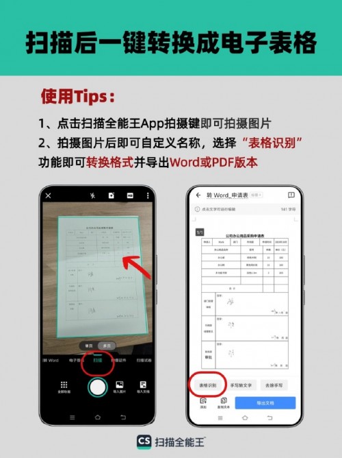 借助先进的AI模型,扫描全能王能够自动识别文档的类型与内容,并智能推荐下一步的动作。如果扫描的是一份Excel表格,扫描全能王还会推荐用户是否将图片转化为表格等。这种自动化流程,极大地提升用户工作流的丝滑感,为高效检索奠定了坚实基础。