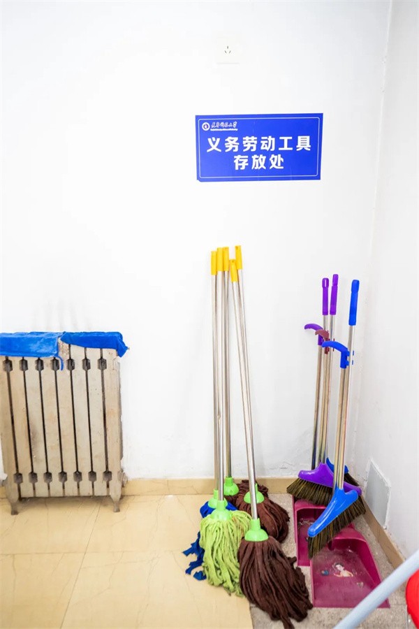學生參與校園勞動保潔是天津科大勞動教育的傳統,今年學校正式推行全體師生參與校園清潔的勞動教育舉措。學工部部長崔永根介紹,為了形成良好的示范效應,學校這一勞動安排沒有例外,校長帶頭參與清掃辦公區域。學校推行這一舉措的初衷是將勞動教育潤物無聲地“植入”日常校園生活,實現學生自主負責校園環境衛生常態化,使學生在布置教室、美化校園的過程中成為學校管理服務的主人,不斷推進勞動教育與價值觀教育有機融合。