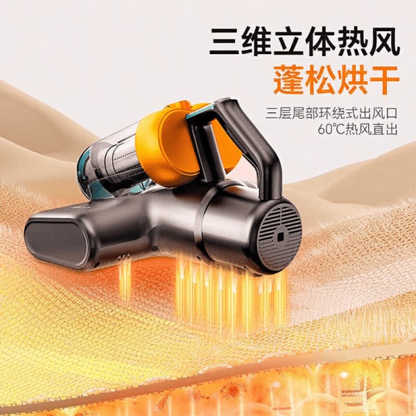 轻巧便携设计:仅重1.37KG,单手掌握,无须费力,收纳也方便。 强劲清洁能力:双电机协同作用,深层清洁床垫、沙发,再顽固的毛发也不在话下。 高效除菌技术:紫外线UVC灭菌,杀灭99.99%的细菌,让您的家居更健康。 四重高效过滤:旋风设计精细过滤,捕捉微小颗粒物,减少二次污染,空气更加清新。 独立热风循环除湿:有效烘干被褥,防止潮湿螨虫滋生,确保优质睡眠体验。适合人群:家庭用户、关注家居卫生和健康的消费者,再也不用担心霉菌和尘螨。