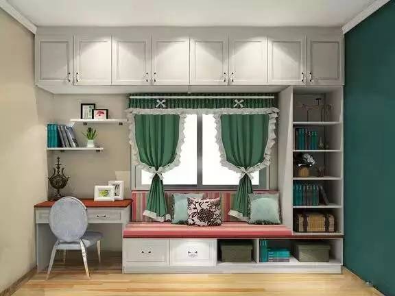 美美的飘窗柜,特别是换季的衣物,通通放到顶柜上。