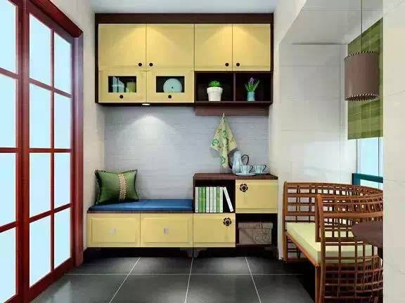 阳台里摆放太多的植物也不好。占用部分的空间做一组柜子吧,在家里增添一个休闲的去处,也能多出一些收纳空间噢。
