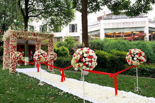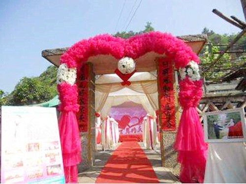 农村户外婚礼拱门是必不可少的装饰道具,也是最让宾客感受到婚礼的浪漫气氛的一个设备。至于拱门的数量,可以根据场地的大小来决定。可以自己设计拱门的造型,用花或者身边比较好看的物品做为拱门的装饰。4、创意布置