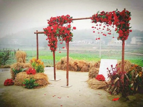 农村会有很多城市里没有的物件,所以用来布置婚礼现场,是非常有创意的。比如说稻草堆的合理利用就是非常有创意且有意义的。给人很新颖的视觉效果。5、天然优势