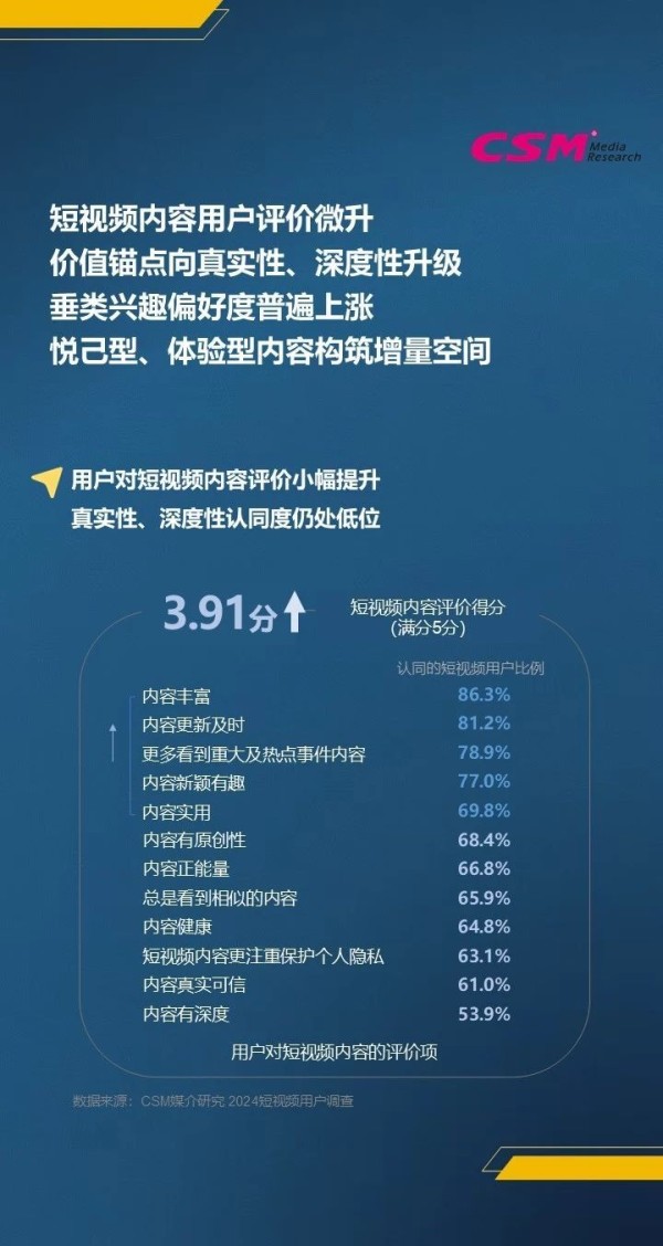 短视频内容用户评价微升,价值锚点向真实性、深度性升级