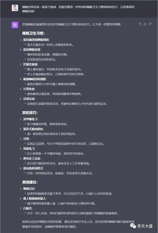 6.睡眠障碍管理提示:“睡眠对我来说一直是个挑战,您能否推荐一些有效的睡眠卫生习惯或放松技巧,以改善我的睡眠质量?”