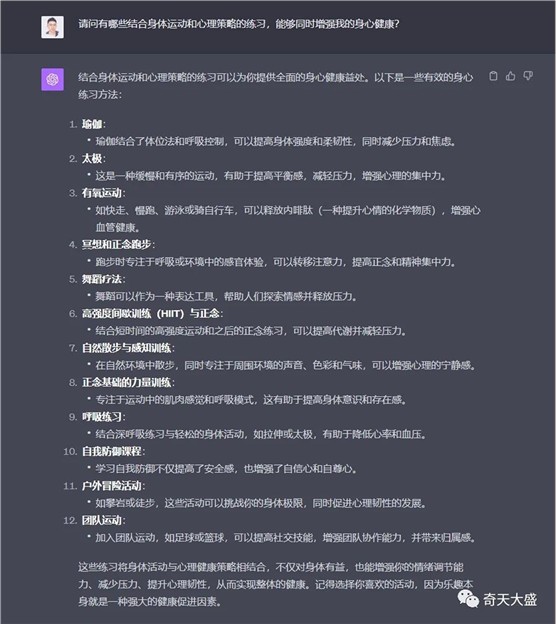 8.促进身心健康提示:“请问有哪些结合身体运动和心理策略的练习,能够同时增强我的身心健康?”