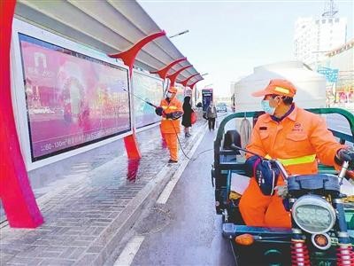2月20日9时,在中兴东大街明月洞公交站,环卫工人温少林手持高压喷枪,正对站牌进行全方位冲洗。10时30分,中华大街与钢铁路交叉口,公厕管理员王道兴仔细擦拭着公厕护栏,他说:“年后公厕使用率增加,得把护栏和门把手清理干净。”