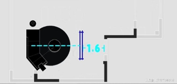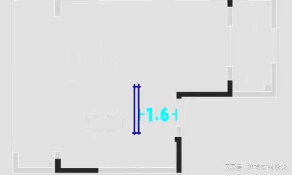 首先我们在入户位置距离入户门1.6米的位置,起墙对室内形成遮挡,这里也就形成了玄关区。一墙两用,不仅能作为玄关墙壁,后方还能作为电视墙来用。