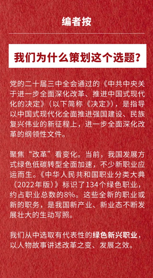 当前,我国经济社会发展已进入加快绿色化、低碳化的高质量发展阶段,推进行业向“绿”发展,离不开人才支持。一批绿色新职业蓬勃发展,也正体现着“双碳”目标的深入践行,映射着产业向“绿”发展的变革趋势。