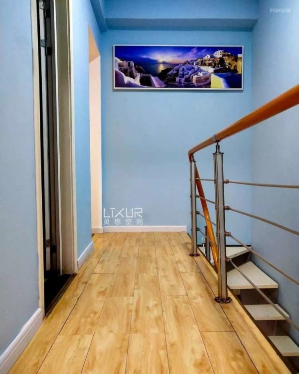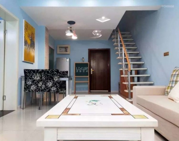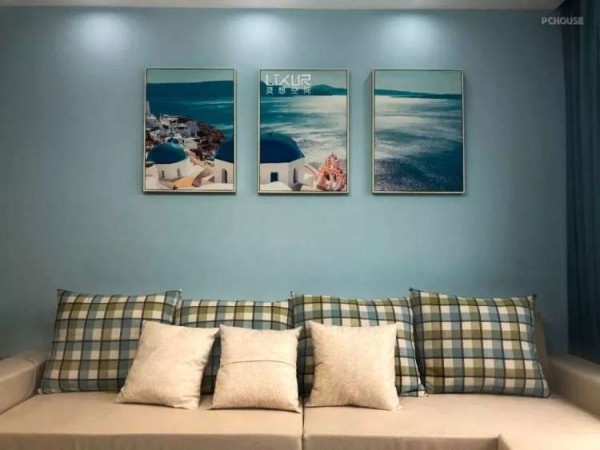 改造后客厅墙面刷成了浅蓝色,给人的视觉感受不像原来纯白色那样的冰冷,更容易联想到大海的恬静,在夏天感到凉爽,在冬天不单调。客厅的整体色调由浅蓝色为主色,米白色和其他素色、淡雅的颜色搭配,清新自然。
