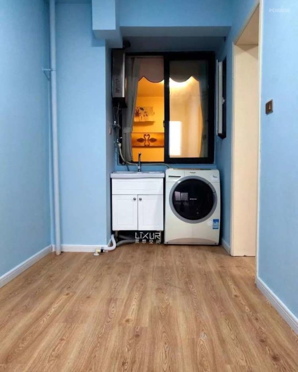 主卧的旁边有一个放置洗衣机的阳台,闲暇时可以搬把椅子在那里看书或者晒太阳。