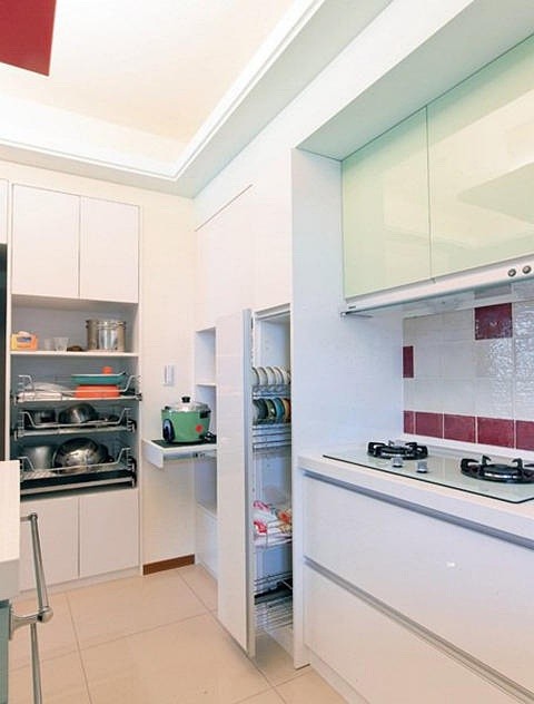 厨房收纳真的需要花功夫规划,尤其收纳柜的安排更需要下功夫,才能装进大小不一的各种厨具。