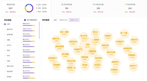 但从商品舆情来看,品牌10月份的负面舆情占比19.72%,主要集中为产品做工问题。尽管价格优势可以吸引消费者,但产品质量始终是品牌长期发展的关键综合来看,品牌需要持续优化产品,真正提升品牌的价格力,细水长流地将好价好货做为品牌基调。