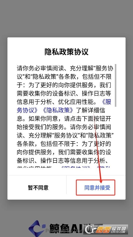 1、在本站下载鲸鱼AI助手,打开并同意隐私协议