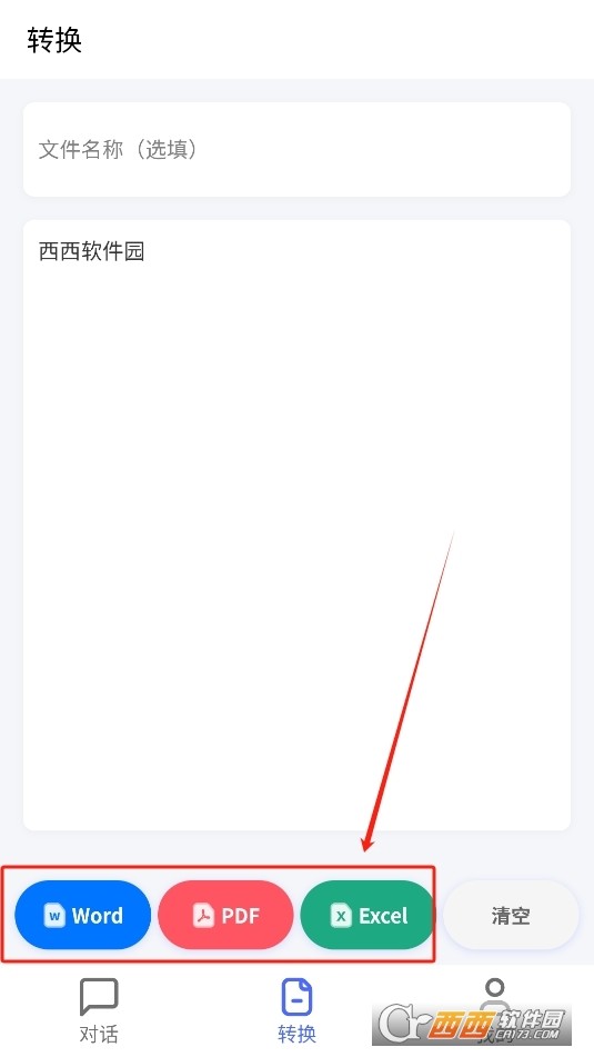 3、点击底部的转换可以将对话转换成箭头所指的文档格式