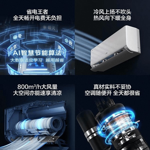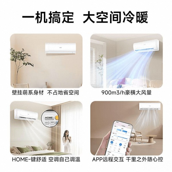 强劲的温度调节能力:采用极速冷暖技术,让炎热与寒冷都能在短时间内迎刃而解。无论是夏天的酷热,还是冬天的严寒,都能迅速让居室保持舒适的温度,提升生活质量。 智能化的温控系统:配备高效的温控设备,根据室内外的温度变化自动调节,非常精准。无论外界天气如何变化,都能保持室内始终如一的舒适,为生活增添便利。 极致的能效表现:先进的能效设计有效降低日常电费支出,让享受舒适环境成为一种愉悦而不负担的体验。充分考虑可持续发展,让环保与舒适同行。 便捷的远程操控体验:通过智能家居APP,能够随时掌控空调状态。不论身处何地,都能够轻松调节温度和模式,让家中的舒适感随时随地陪伴您。 健康清新的空气保障:独特的自清洁技术及多重过滤机制,确保呼吸空气的洁净。为您和家人提供健康的居住环境,告别尘埃与异味,让每一次呼吸都倍感舒适。