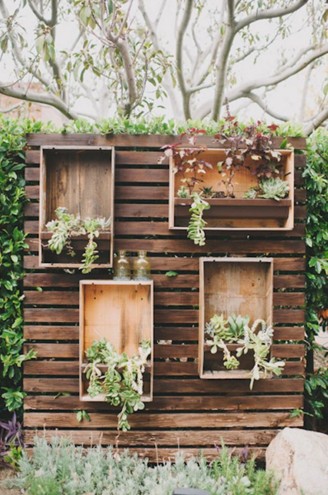 当然了,要是你想更文艺点,那不妨将几个原木箱钉起来,中间留个空格,放上喜欢的艺术品文艺清新又增添了几许意境。