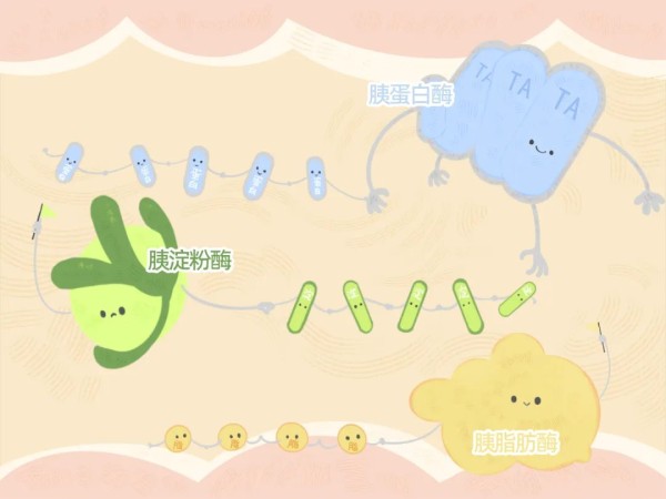 这是因为胰腺分泌的胰液中含有多种消化酶,如胰淀粉酶、胰蛋白酶、胰脂肪酶等,就像厨房的「食物剪刀」,通过分解淀粉、蛋白质、脂肪等物质,把食物剪成身体能消化吸收的营养碎块。当胰腺分泌不足时,咱们的消化就很难得到足够的支持。